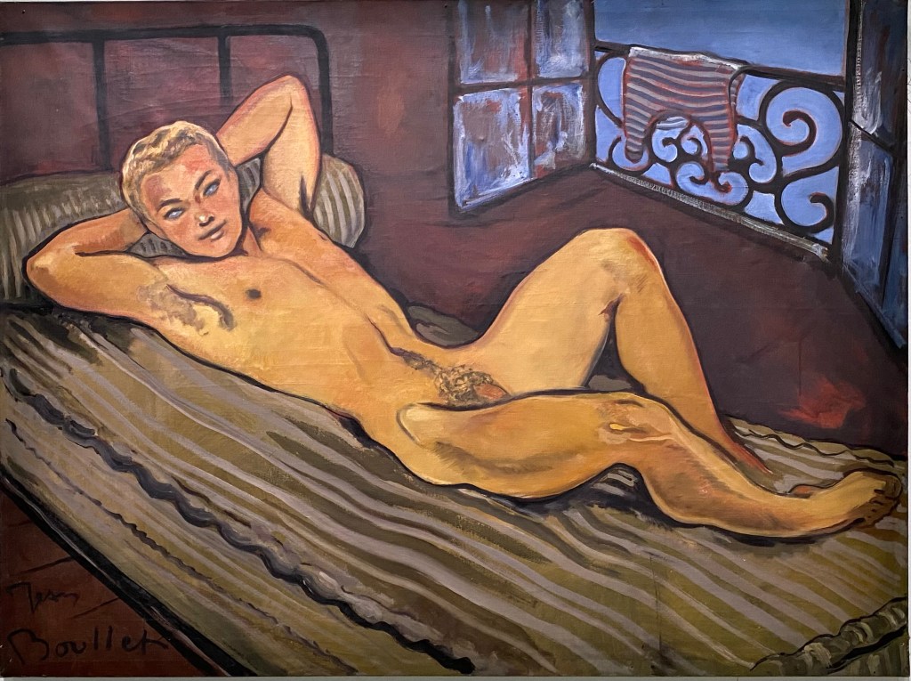接下来是专门关于Aids epidemic的作品,上世纪80年代纽约爆发的艾滋病鲜少在大众范围得到关注,我只在很少的文艺作品里见过这段历史。特展展出不少人们为了让政府公共卫生部门积极应对艾滋病抗议的照片,当时制作的海报和宣传单,还有一些批评里根和布什政府的波普艺术。接着是lgbtqia+平权的照片和记录,以及一些艺术影像。比较打动我的是几幅油画作品,裸体男孩舒展地躺在床上,背景红色蓝色产生的冲突配合着他挑逗的眼神,一种不安的反叛让我没来由地想起“颠覆”这个词。对我来说,好的视觉作品除了能够冲击到感官以外,最重要的是颠覆过去固有的观念和对事物的认知,尤其是那些被社会主流潜移默化而缺乏了解和深思熟虑的。