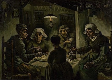 下一个展厅是著名的吃土豆的人,早期代表作之一。整幅画灰暗阴郁,像极了阿姆的天气。画里的农民在微弱的灯光下分吃着土豆,高光打在他们瘦骨嶙峋饱经沧桑的手指关节上,隔着一百多年都能感受到当时困苦的生活和人们劳作后短暂的平静。再一次地,他对普通人的关爱让我领悟到画人物要表达的是human condition。想到传记里的内容,早期梵高在Drenthe开始画油画时,模特大多是周围煤矿工人,妓女,农民等底层人士。同一个展厅里,他研究吃土豆的人时练习的模特画像也十分令人动容。漫长的绘画史里,歌颂神,上帝,圣母和皇宫贵族的比比皆是,能用这样的笔触留下那个时代挣扎的底层民众的寥寥无几。